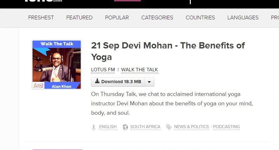 with wonderful Alan Khan. Devi Mohan speaks about her NDE experience, Yoga, experiential spirituality and joy of service. In Durban, September 2017.