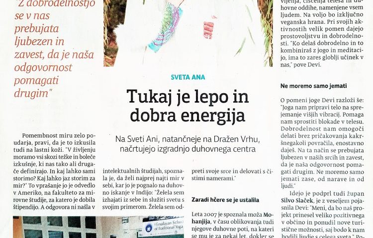 (about the choice of St. Ana as the new home and location of the future Mohanji ashram (spiritual center) in Slovenia, her Yoga teaching, charity work and life philosophy).