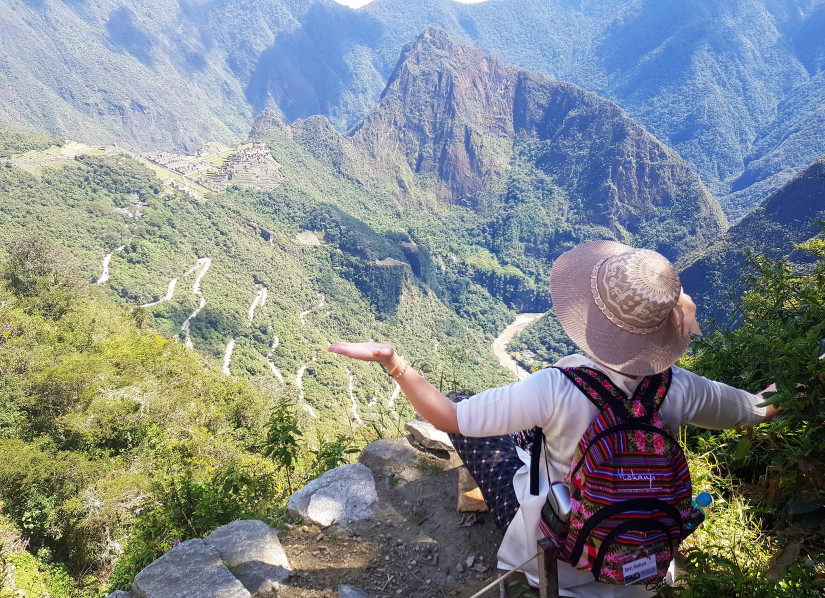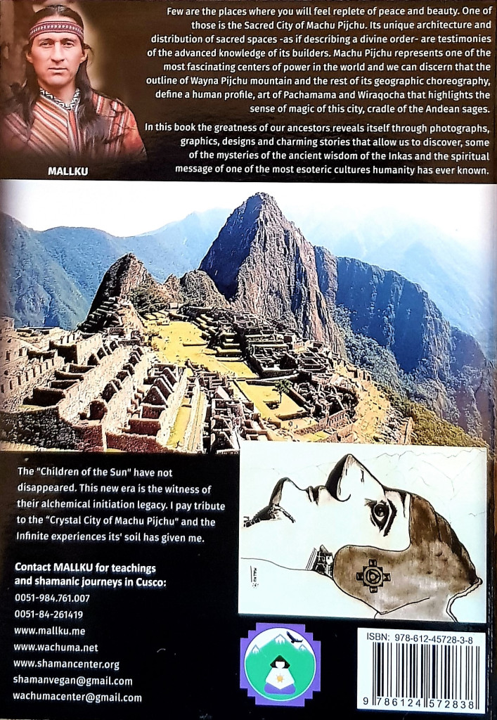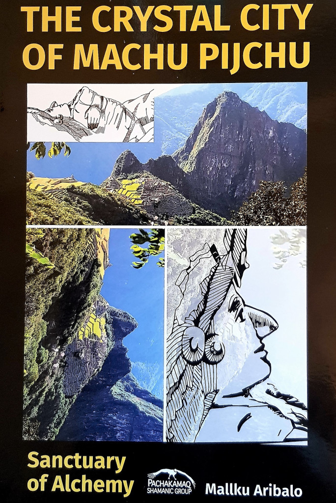 During the one hour climb to the Sun Gate on 15 April 2019, it was wonderful listening to many stories that our lovely guide Mallku shared. His love for the genuine history of his Inkan ancestors is very deep and sincere, shared through several books that he wrote and his many tours. At one point we stopped at the location where the view of the entire Machu Picchu complex was fantastic. While looking at the shape of the magnificent Machu Picchu and Wayna Picchu apus (mountain, or more specifically, the spirit of the mountain), Mallku shared with me the amazing images displayed on the front and back cover of his book “The Crystal City of Machu Pijchu”, helping me to identify those shapes on the spectacular mountains in front of us.