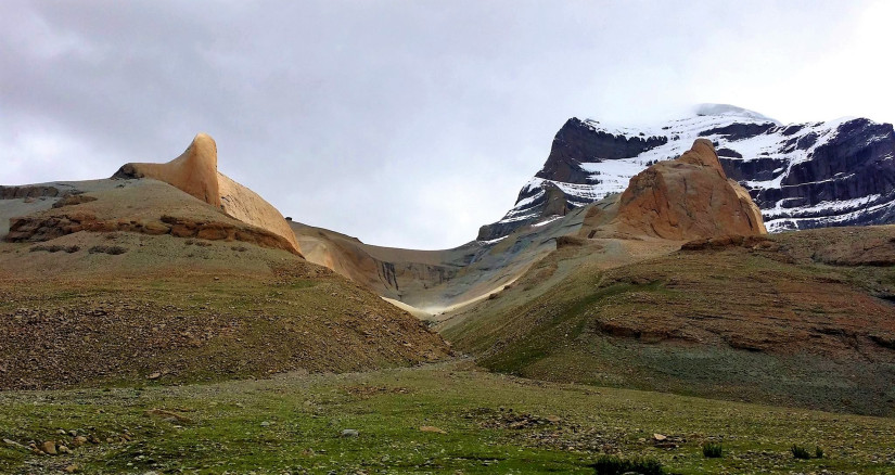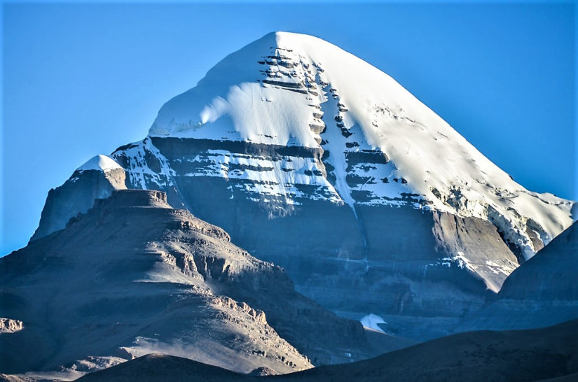 South face of Kailash (Small Kailash visible on the left, covered with the snow-clad white dome). (Image sourced from the net – The Land of Snows 2014)